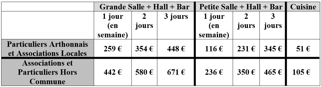 - Tarif de location de la salle multi-activités